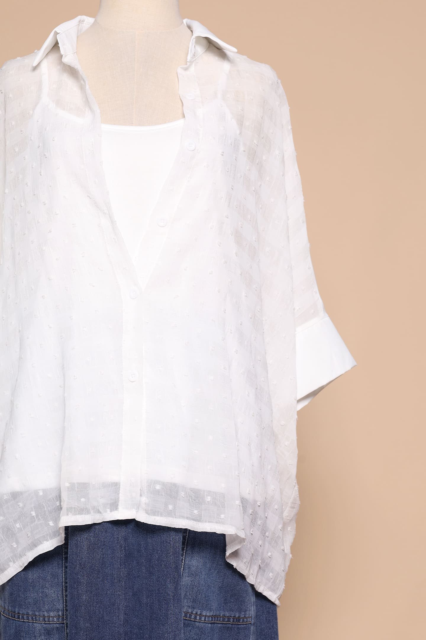 - Outer shirt has functional buttons down and collar finishing